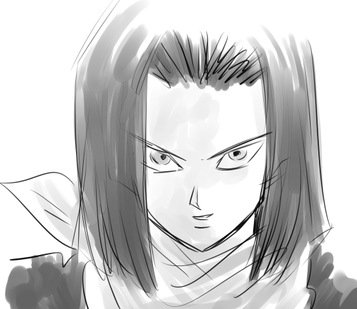 二次同人の世界でかっこよく描かれがちだけど、実は10代なんだよね17号。17歳かな?このくらいガキっぽい方がリアルかもしれない。初めて少しうまく描けた……と思うw