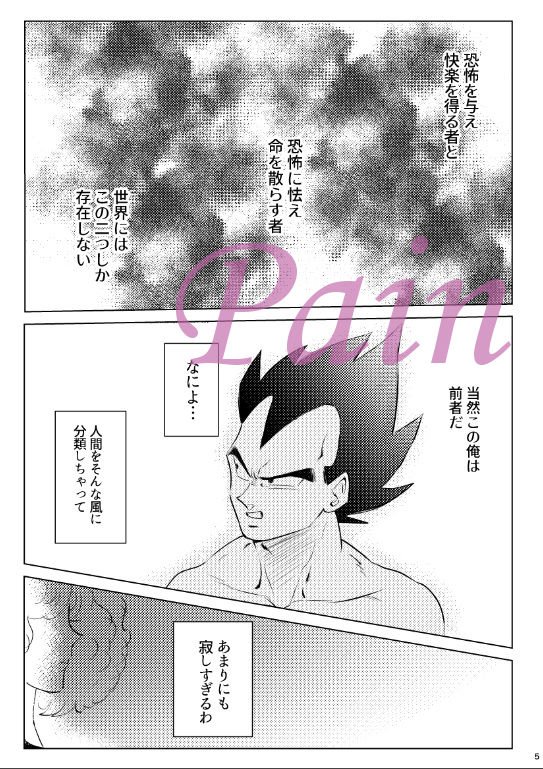表題作の『Pain』は、未来編で悟空が亡くなり、ベジータとブルマが初めて結ばれるまでの日々を静かに描いたもの。なかなか仕上げが終わらないけどマジで心を込めて描きたいと思ってます。