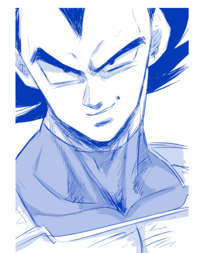 その人の悟空があまりにかっこいいのでちょー時間かけて模写して、ベジータに変えてみたw