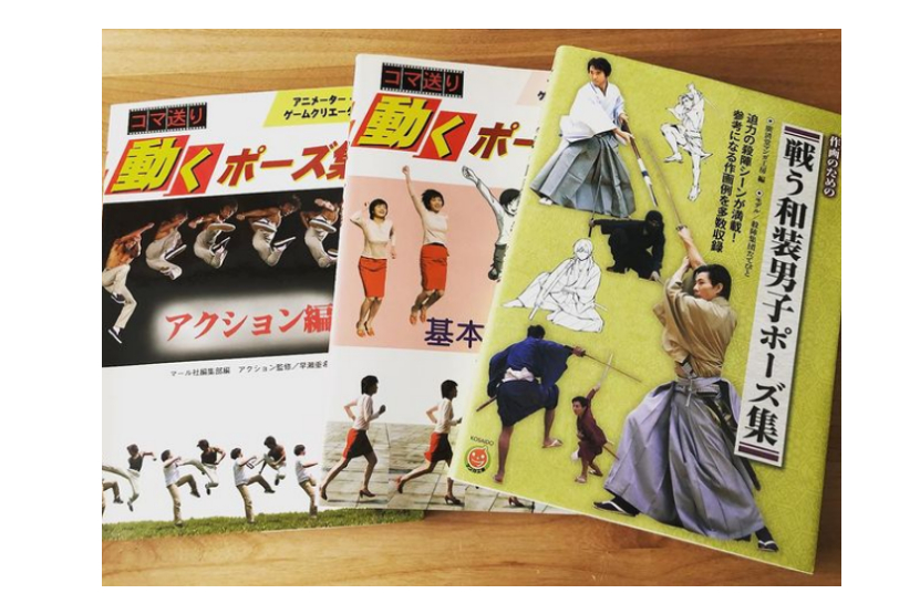ポーズ集はたくさん出ているが、こういう「一連の動きを流れで掴む」ことが大事だと、とあるイラストレーターさんが言っていたので、