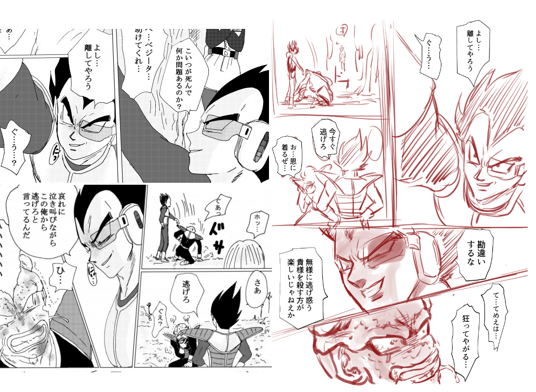 下描きをさらに描き直したら最高の鬼畜顔ベジ描けたwペン入れの段階で台無しになりませんように…。