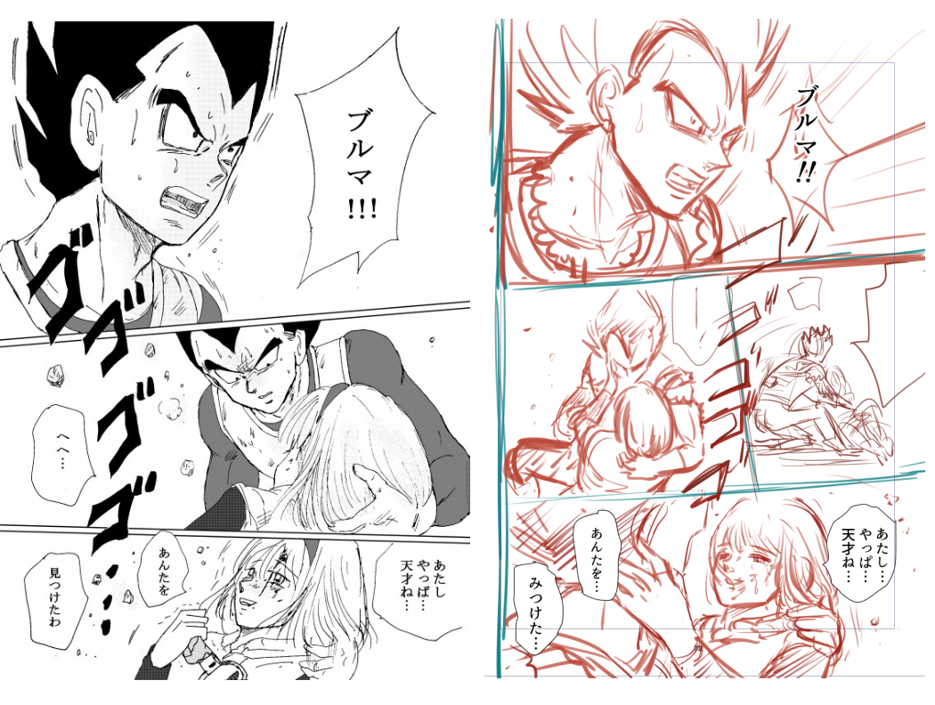 ちょっとした裏話なんだけど…実はこの「ブルマ!」と初めて名前を呼ぶシーン、ドラマ「愛していると言ってくれ」のトヨエツを思い出しながら描いてた。この漫画を仕上げたのはもう何年も前のことだけど、今でもはっきり覚えてる。