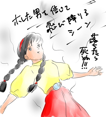 これ一応、パズーの胸に飛び込むシーンです。