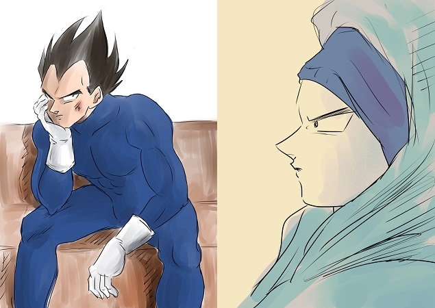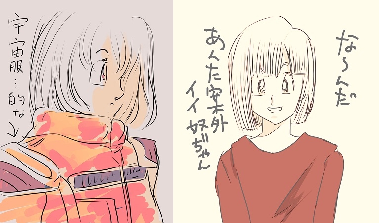 ブルマの絵とこっちのフードかぶってるベジータは、最近お絵かきソフトで見つけたグラデーションセットを使用。(フードに見えない?まあ大目にみてちょ)