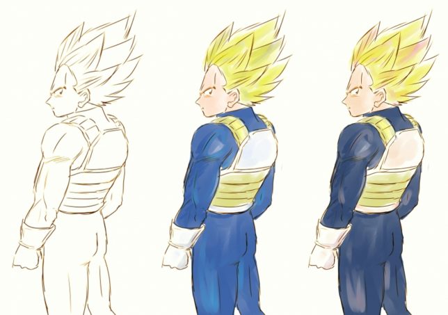 そして自分で色塗り→それをまたグラデ加工、で一番右端のベジータ完成。