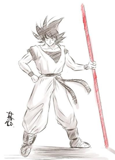 来春映画公開という噂を耳にした。公式ポスター?見ながら描いた。公式絵より明らかにアダルト悟空になってしまったw如意棒……手抜きにも程がある。