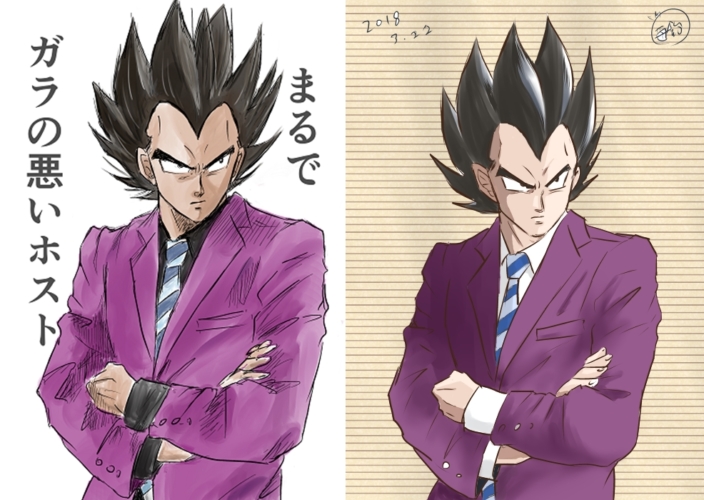 数年前、大好きなこの衣装をベジータに着せた絵を描いたんだけど、昨日それを